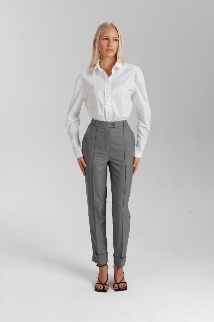 Прямые брюки на высокой посадке с подворотами — стильный и универсальный элемент гардероба. Благодаря идеальной посадке они визуально удлиняют ноги, а аккуратные подвороты добавляют современный акцент. Подходят как для офисного стиля, так и для повседневных образов. Выполнены из качественной ткани, обеспечивающей комфорт в носке.