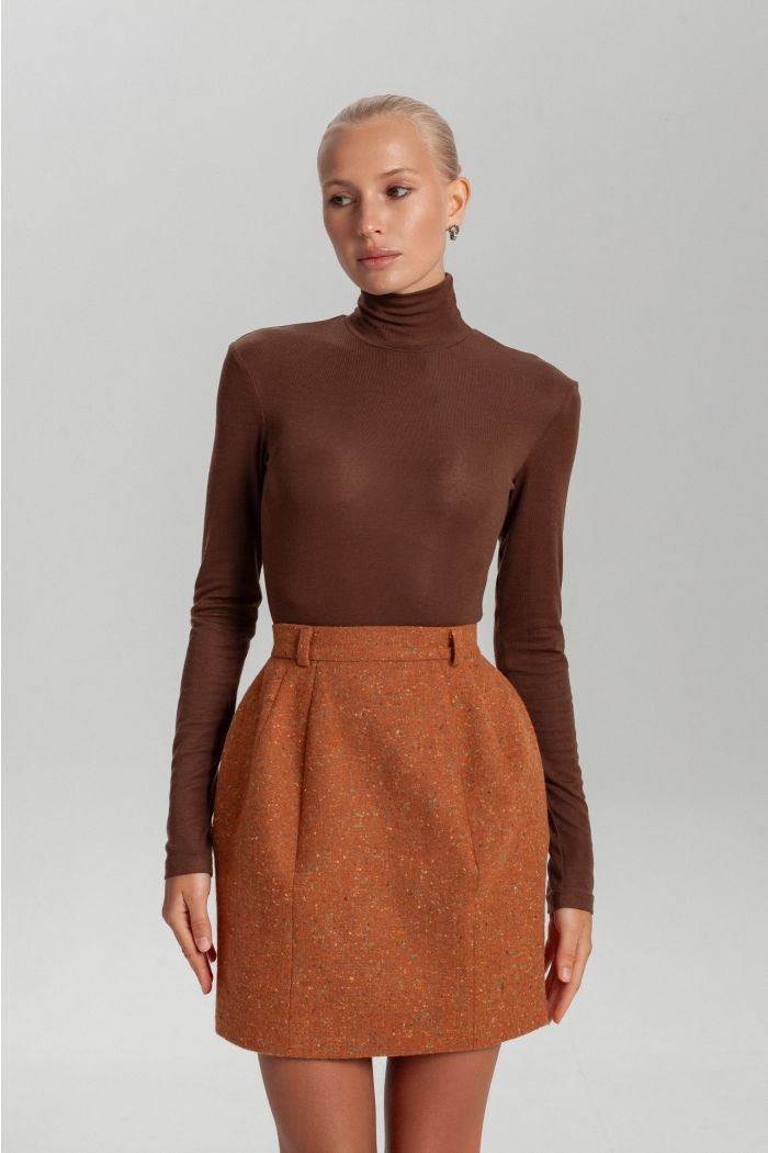 Фактурная мини-юбка — акцентная модель, которая подчеркивает силуэт и добавляет образу выразительности. Плотная ткань с текстурой формирует аккуратную посадку и сохраняет форму, создавая четкую линию. Оттенки варьируются от глубокого зеленого до теплого оранжевого, включая нюансы хаки и охры. Юбка легко комбинируется с жакетом из комплекта или базовыми элементами гардероба, создавая как классические, так и более смелые образы.
