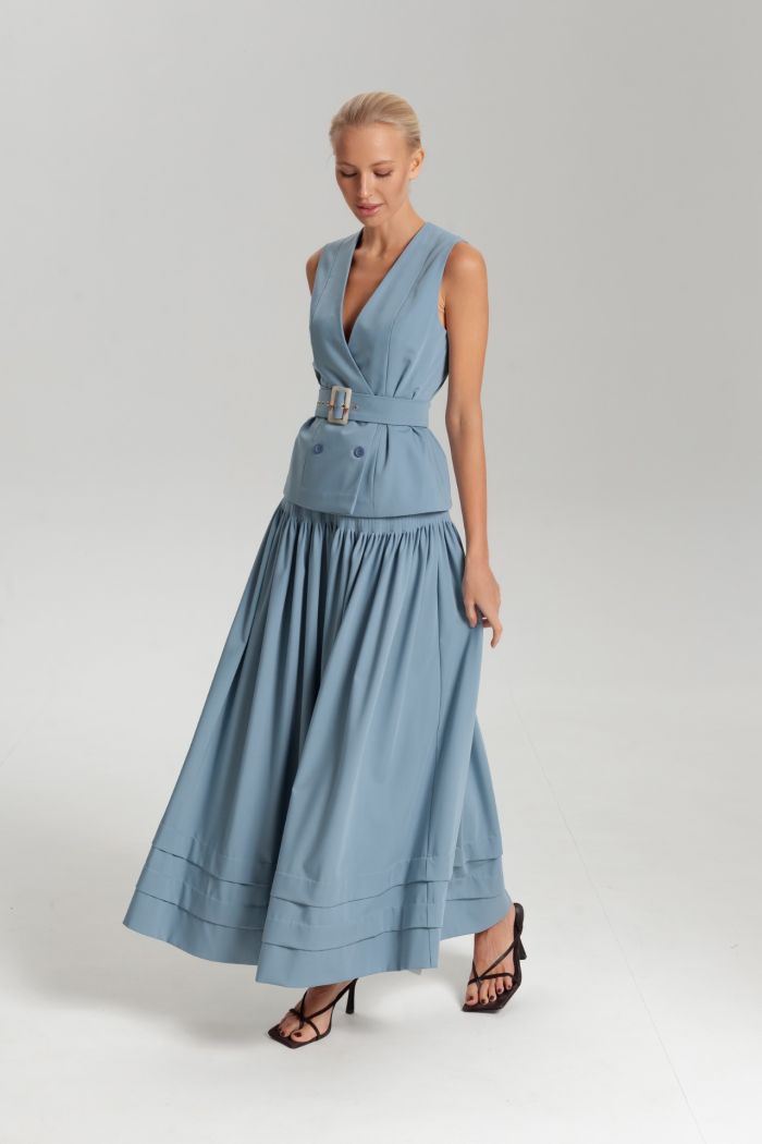Юбка-солнце в складку длины миди — стильное и женственное решение для любого гардероба. Благодаря эластичной резинке на талии она комфортно сидит и подчеркивает силуэт. Свободный крой создает легкость и динамичность образа. Идеально сочетается с топами, блузами и свитерами, подходя как для повседневных, так и для более нарядных образов.