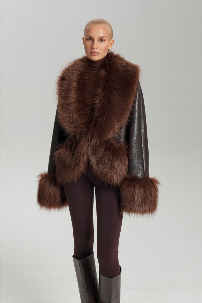 Куртка из фактурной эко-кожи с мехом