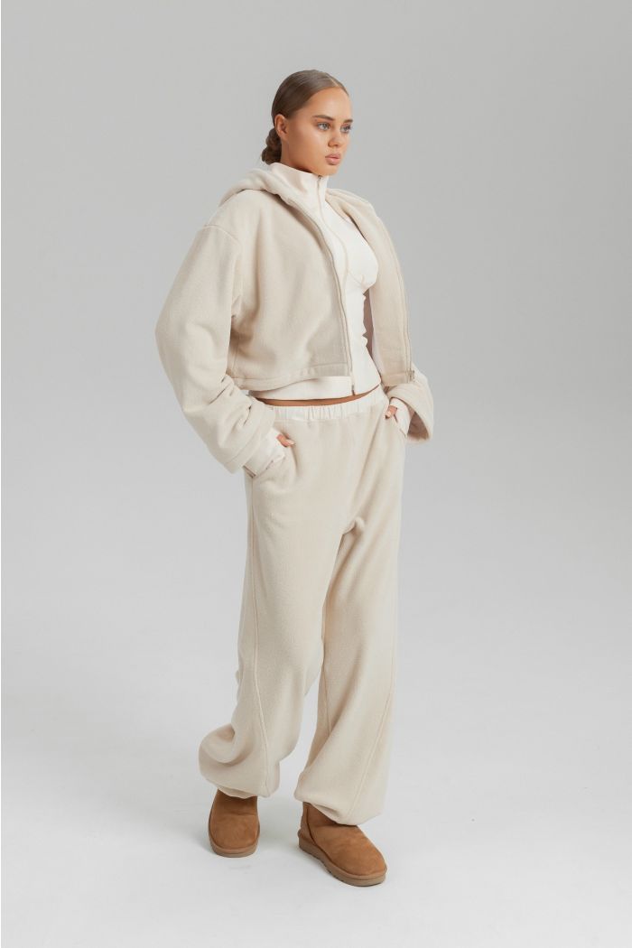 Стильный женский костюм-тройка из мягкого флиса сочетает комфорт и современный дизайн. В комплект входит укороченное худи с капюшоном и кулиской по низу, приталенный топ на молнии с корсетным силуэтом и брюки свободного кроя с регулируемым низом. Костюм идеально подходит для прогулок, отдыха и стильных повседневных образов. Благодаря универсальному фасону и актуальной цветовой палитре легко комбинируется с обувью и верхней одеждой, создавая уютный и модный look.