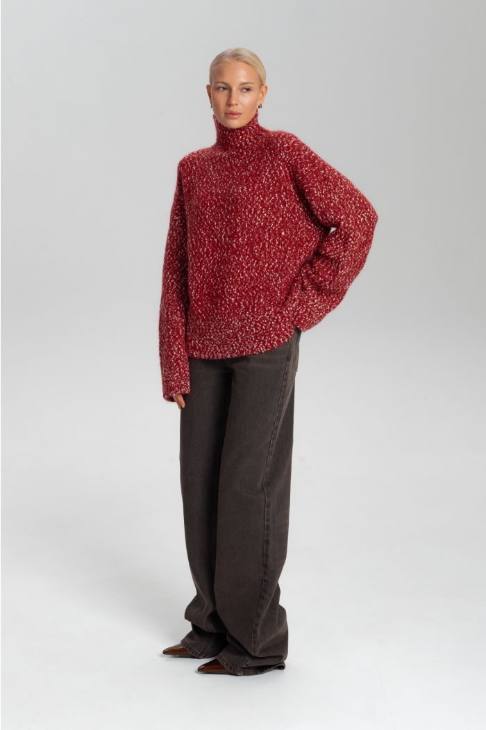 Женский свитер из мохера и шерсти — идеальное сочетание уюта, тепла и актуального силуэта. Мягкая фактура придаёт образу объём и визуальную лёгкость, а натуральный состав обеспечивает комфорт в холодное время года. Свободный крой и удлинённый рукав делают свитер универсальным для повседневных и многослойных образов. Модель отлично сочетается с брюками, джинсами и юбками. Свитер представлен в трендовых оттенках — насыщенном красном и универсальном сером, которые легко вписываются в базовый гардероб.