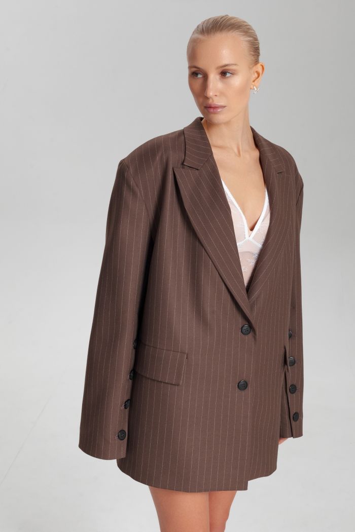 Жакет оверсайз со шлицами на рукавах и спинке – стильная и современная модель для создания выразительных образов. Свободный крой обеспечивает комфорт и элегантную посадку, а оригинальные детали добавляют индивидуальности. Рукава застегиваются на пуговицы, позволяя регулировать их объем. Отличный выбор как для делового, так и для повседневного гардероба. Сочетайте с шортами из коллекции.