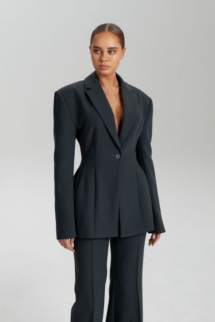 Приталенный жакет с акцентными плечами — воплощение современной женственности и уверенности. Модель выполнена из плотной костюмной ткани, идеально держащей форму, что подчеркивает силуэт «песочные часы». Универсальная длина и лаконичный крой позволяют сочетать жакет как с классическими брюками, так и с юбками или джинсами.Идеальный выбор для офиса, мероприятий и стильных повседневных образов.