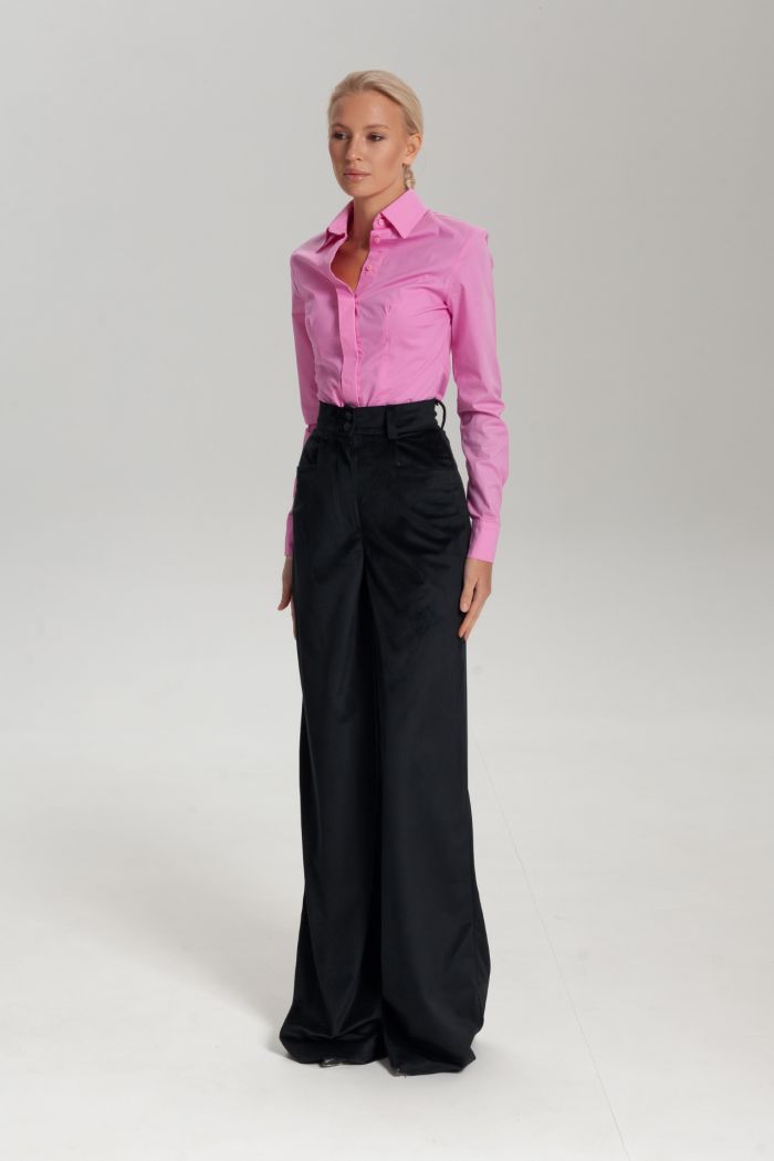 Брюки палаццо из бархата – элегантная и стильная модель, создающая эффектный образ. Роскошная бархатная ткань с мягким блеском подчеркивает силуэт, а свободный крой обеспечивает комфорт и свободу движений. Идеально сочетаются с классическими блузами, корсетами и жакетами, дополняя как вечерние, так и повседневные наряды.