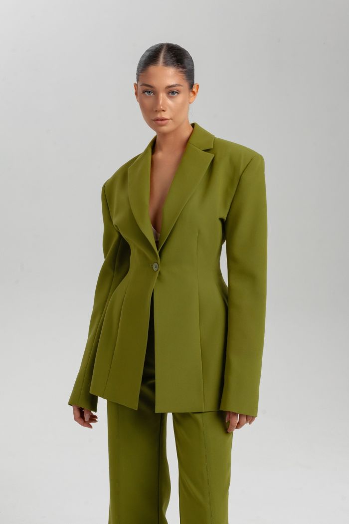 Приталенный жакет с акцентными плечами — воплощение современной женственности и уверенности. Модель выполнена из плотной костюмной ткани, идеально держащей форму, что подчеркивает силуэт «песочные часы». Универсальная длина и лаконичный крой позволяют сочетать жакет как с классическими брюками, так и с юбками или джинсами.Идеальный выбор для офиса, мероприятий и стильных повседневных образов.