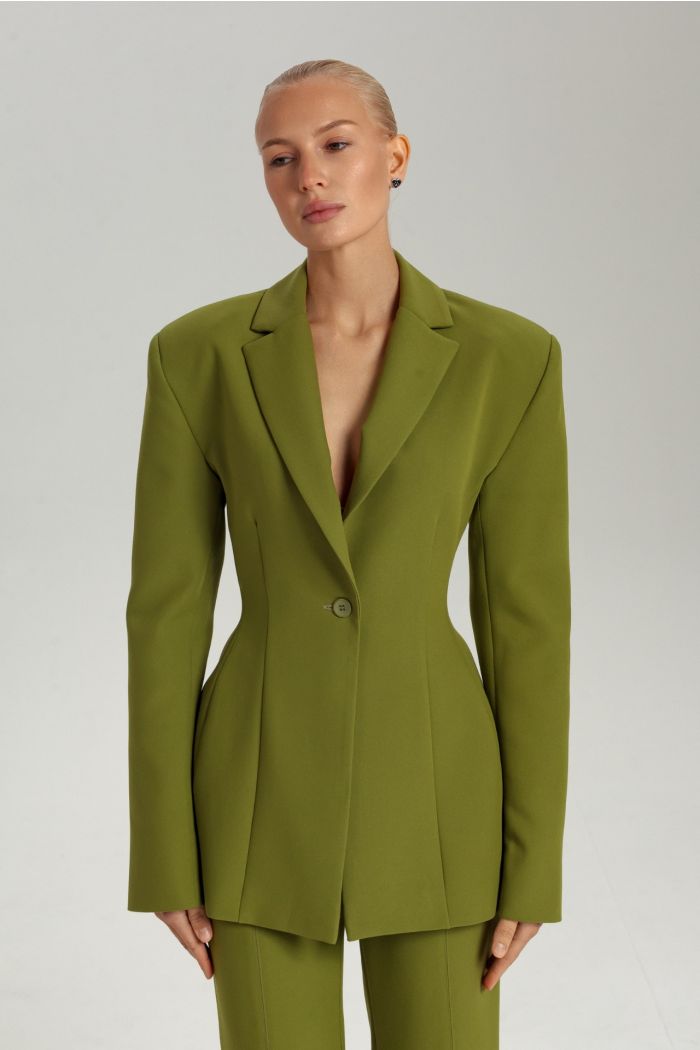 Приталенный жакет с акцентными плечами — воплощение современной женственности и уверенности. Модель выполнена из плотной костюмной ткани, идеально держащей форму, что подчеркивает силуэт «песочные часы». Универсальная длина и лаконичный крой позволяют сочетать жакет как с классическими брюками, так и с юбками или джинсами.Идеальный выбор для офиса, мероприятий и стильных повседневных образов.